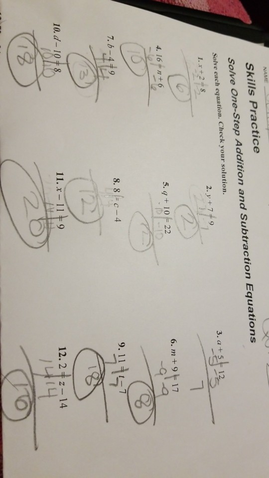 Math 6 Homework 81 Name _____ Solving One-Step Equations. Addition and subtraction equations worksheets - Solution. S R S 1 6 206 Chapter 4 Solving Inequalities Check Skills Youll Need GO for Help 4-2 206 1.